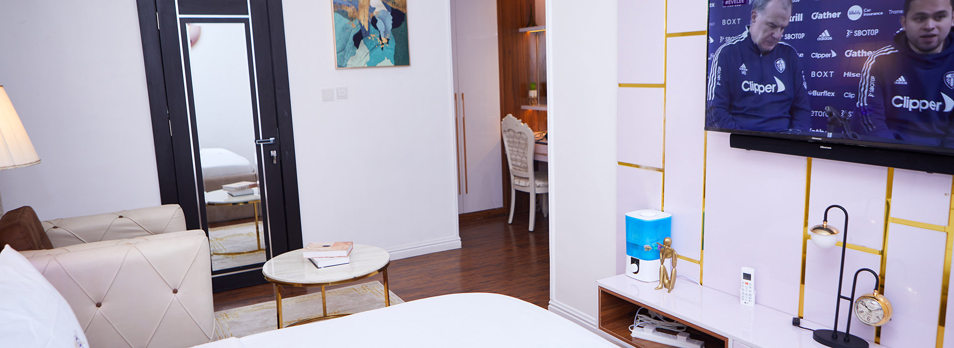 Discover a new home perfect for your lifestyle, that is Arthur’s Apartment! The Arthur’s Apartment features 3 bedrooms, features 3 spacious bedrooms with 3 King-size beds, 1 sitting room, 3 full baths, Smart TVs, indoor security cameras and a fully furnished kitchen. For more convenience, you also have access to 2 beautifully furnished balconies for relaxing sit-outs and automated curtains.